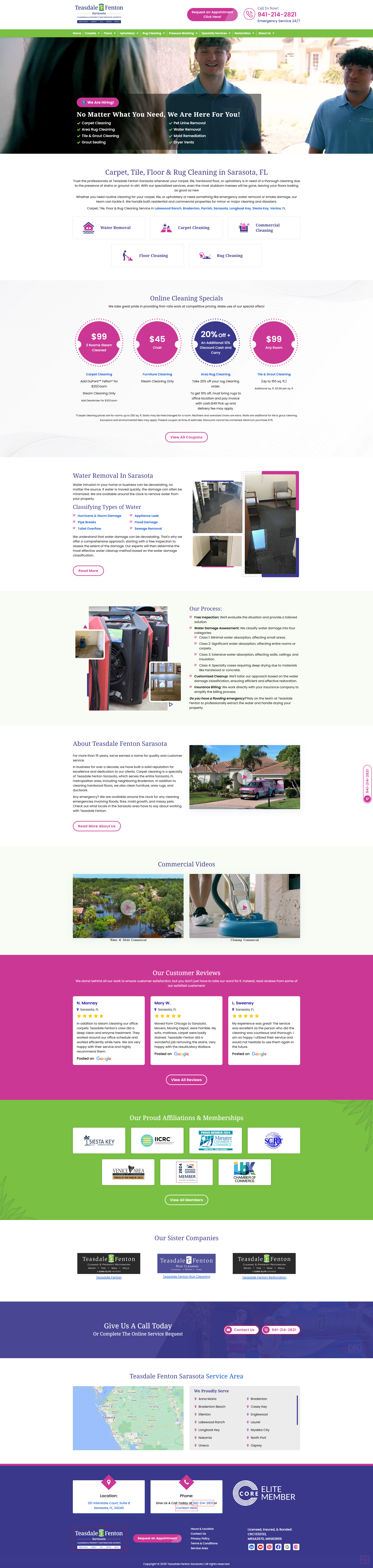 Teasdale Fenton Sarasota wanted to strengthen their online presence and attract more local customers searching for carpet, rug, and floor cleaning services. Their existing website wasn’t effectively reaching or engaging potential clients online. They needed a digital strategy that would boost visibility, drive traffic, and convert visitors into leads.